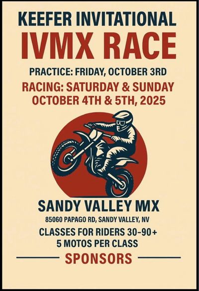 COME JOIN US OCTOBER 4TH-5TH AT SANDY VALLEY MX PARK